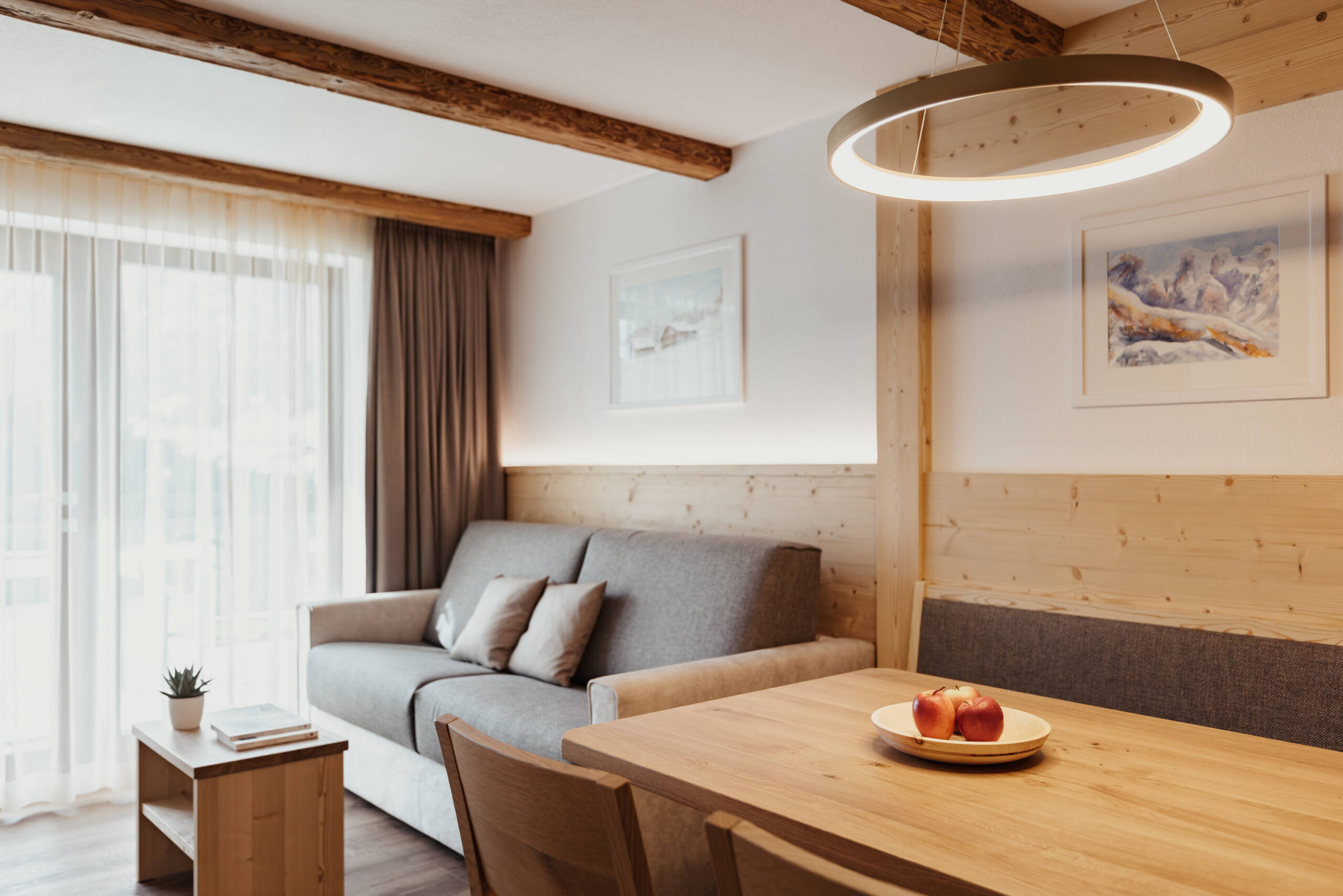 Unsere teils neu erbauten Ferienwohnungen mit Bergblick und tollem Panorama holen die Natur von draußen nach drinnen und sorgen für ein gemütliches Ambiente.