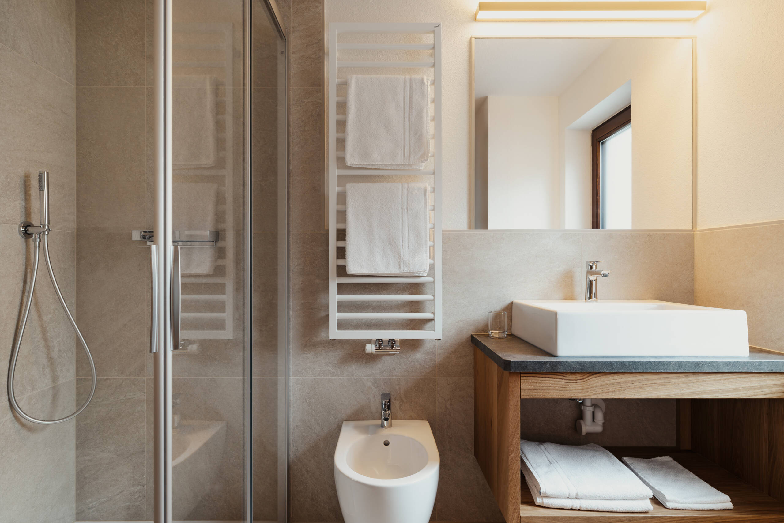 • zwei Bäder mit WC, Bidet und Regendusche